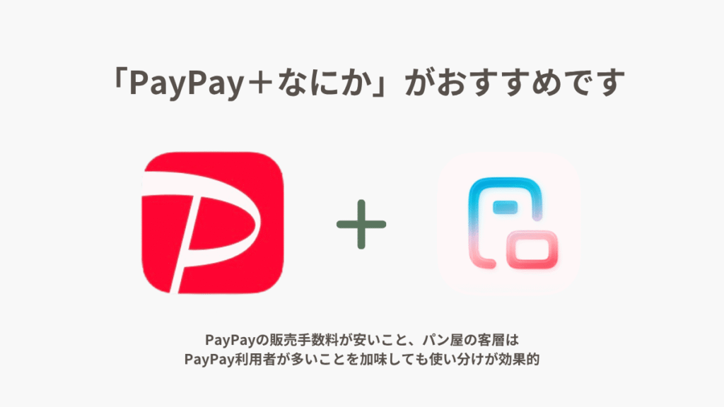 パン屋は単価が低いからか、PayPay払いが多いのも特徴。これは体感です。となると余計にPayPayは単体で導入した方がよさそう。PayPayの導入・実践については次の記事で解説します。