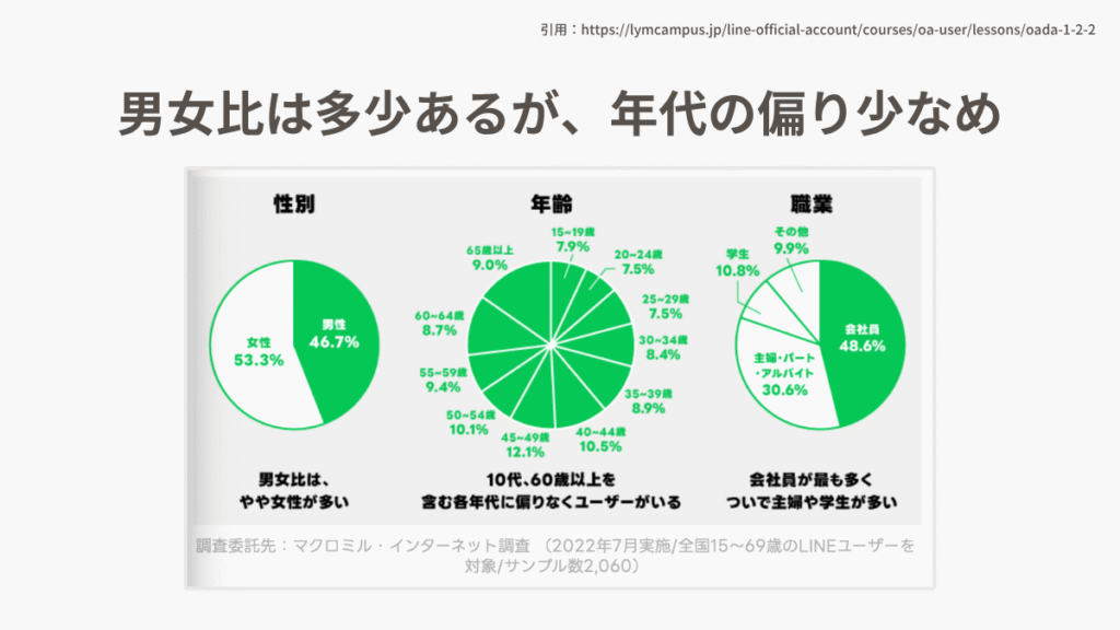 LINEの大きな特徴として、年代や性別を問わず利用されていることがあります。
