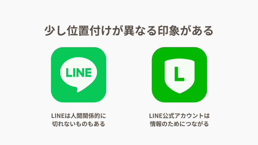 LINEは知り合いなどと繋がりますよね。ブロックするとなると大仕事というか、結構大変笑。対してLINE公式アカウントは「つながりたいからつながる」