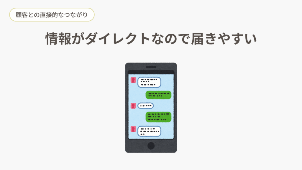 メルマガ等に比べて開封率が高いため、イベント出店や定期販売などの案内を送ったり活用できます。