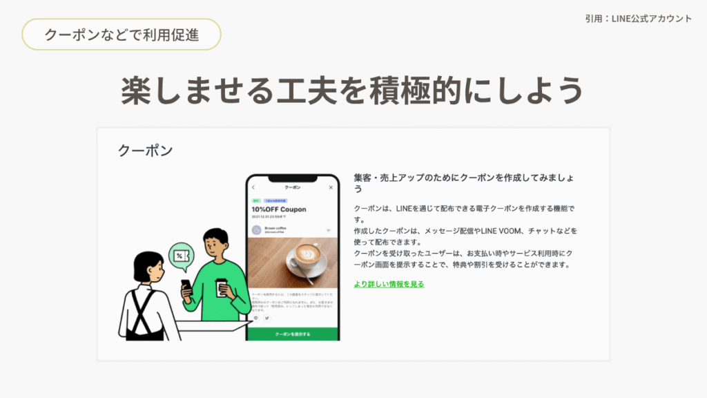 LINE公式アカウントにはクーポンの発行やデジタルのスタンプカードの機能が備わっています。