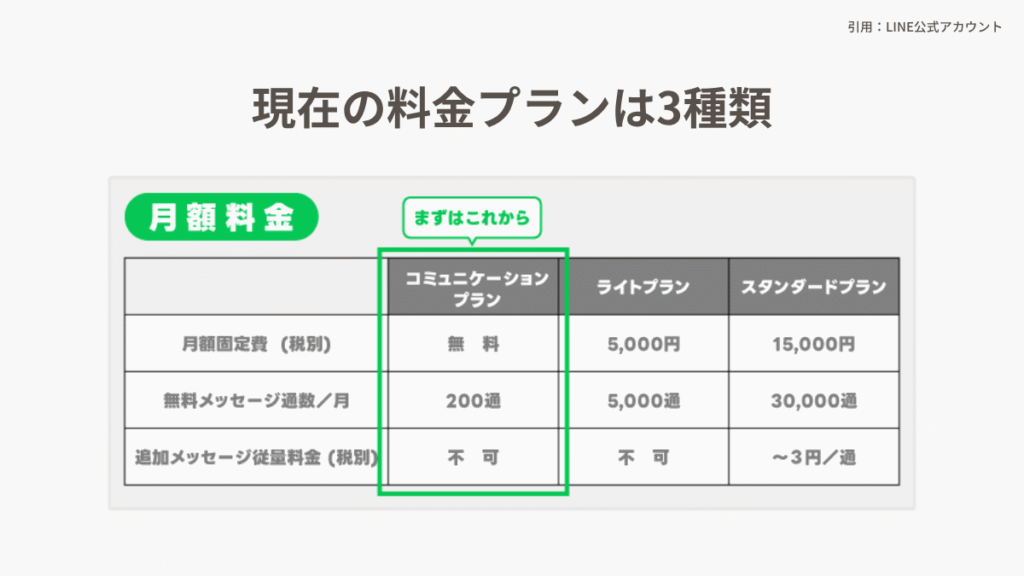 LINEとの違い、LINE公式アカウントの特徴、料金プランについて解説しました。