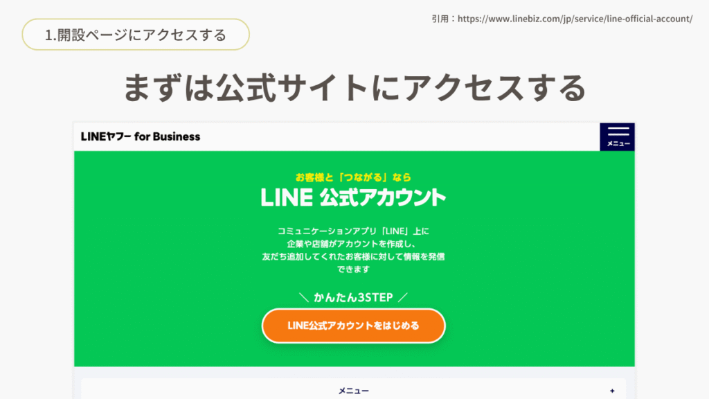 まずLINE公式アカウントの開設ページにアクセスしましょう。