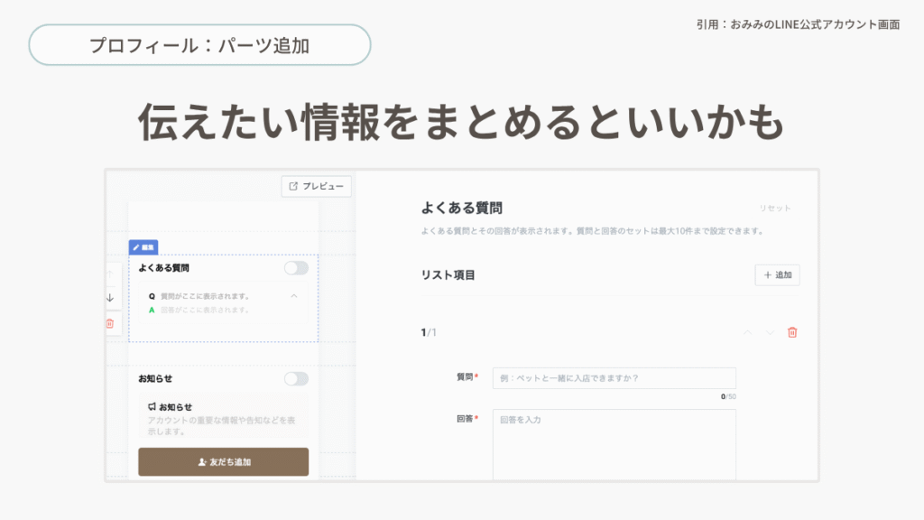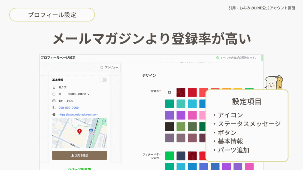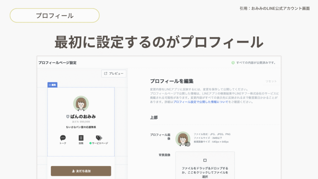 LINE公式アカウントを開設して、最初に設定するのがプロフィール。