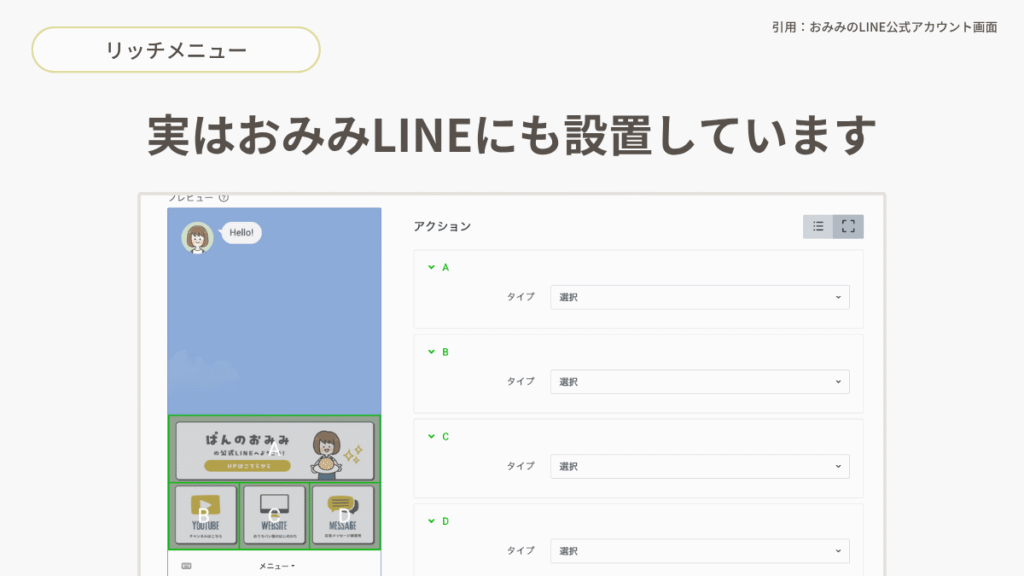リッチメニューはわたしも使っていますので、次の記事でガッツリ解説します。