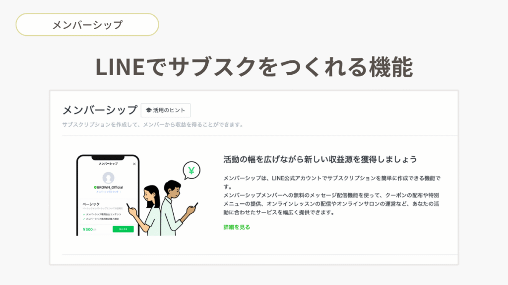 LINE公式アカウント上で簡単にサブスクを作成できる機能となります。