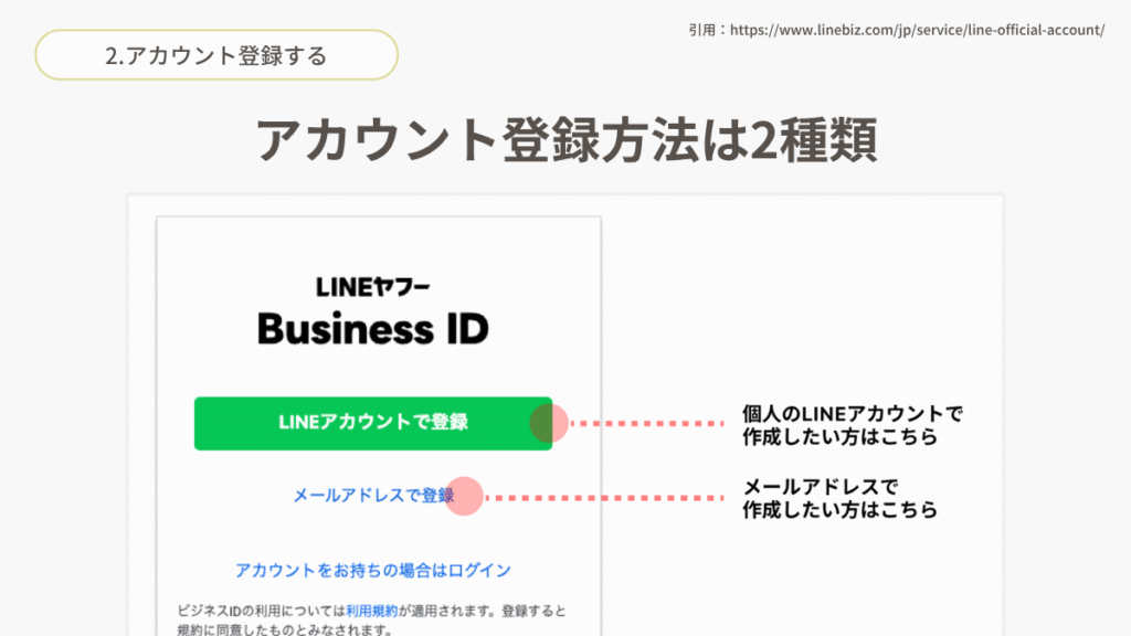 メールアドレスで登録した場合はそのアドレスにメールが届きますので、メール内のリンクから「ビジネスID」の登録へ進みます。