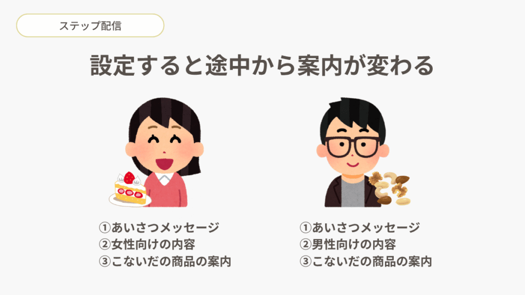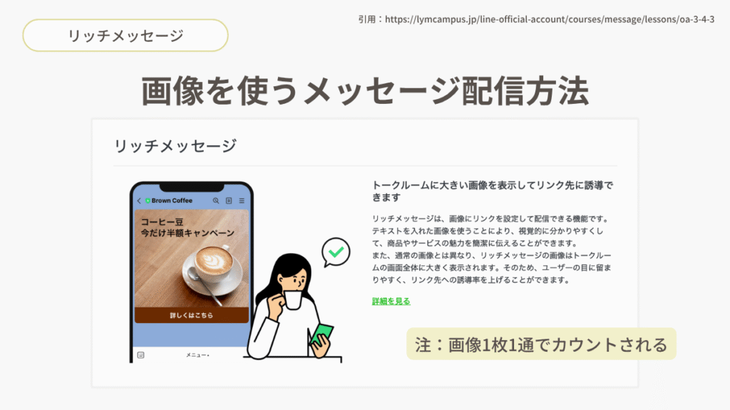 テキスト以外に、クーポンなども入れられます。なので「友だち追加感謝クーポン配布!」とかなんとかいって、クーポンをプレゼントすると購入につながりますね。