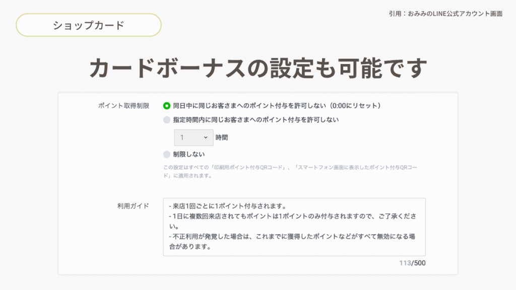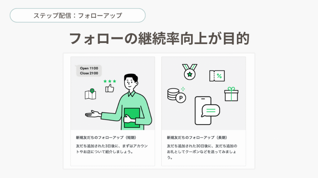 単体で使うこともできますが、友だち追加したタイミングでポイント付与することも可能。お得感も出ますので、初期投資だと思って設定してみてもいいかと思います。