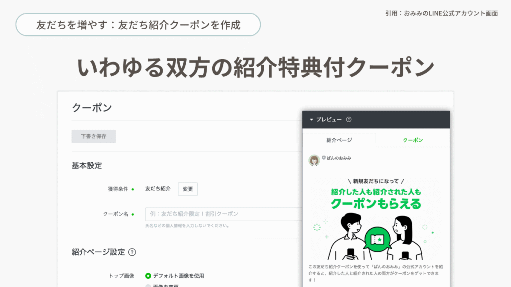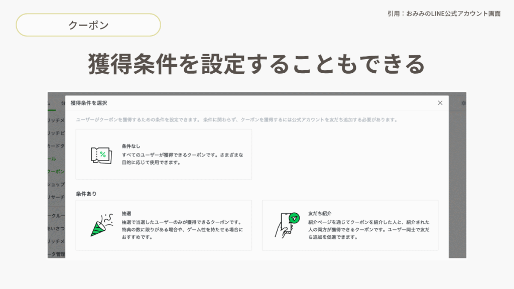 こちらクーポン機能で出てきましたよね。お客さん同士で拡散させてくれるため、使えるなら使いたい機能です。