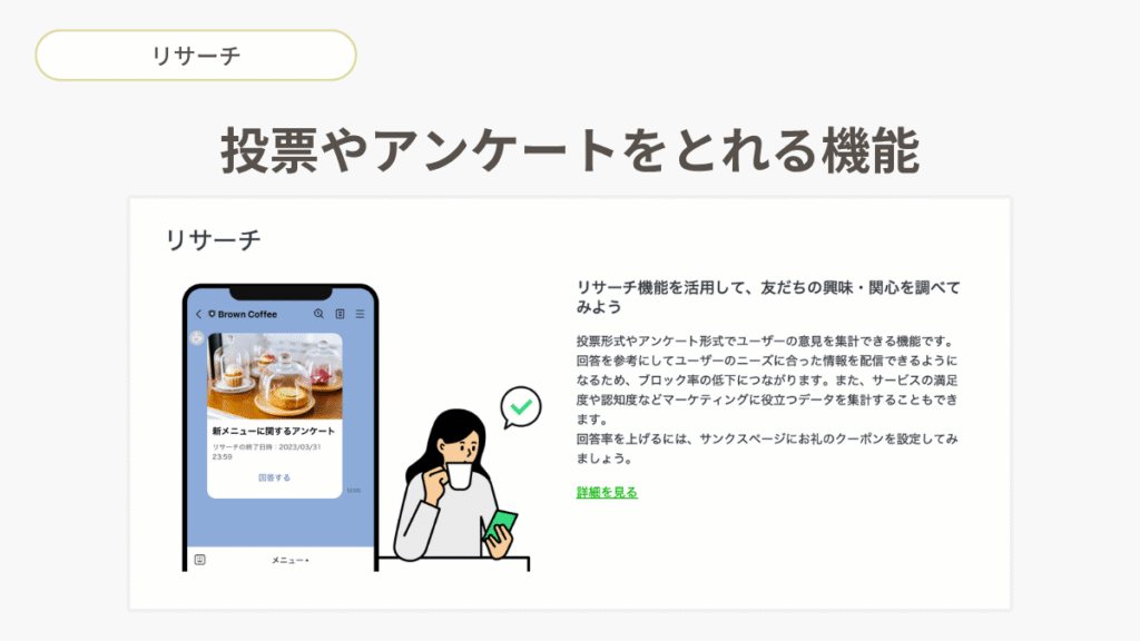ここではLINE公式アカウントでできることを解説していきます。これらを組み合わせることで効果的かつ効率的に宣伝ができるようになります。