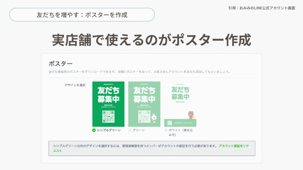 LINE公式アカウントでは無料で作成できるポスターもあります。