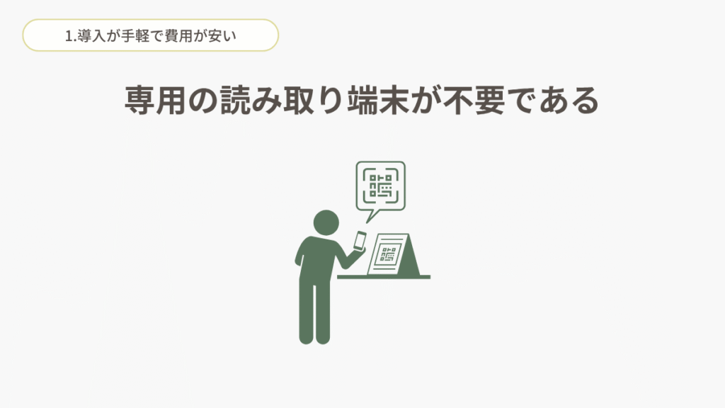 また読み取り端末を用意しなくていいので、導入費用も抑えられます。