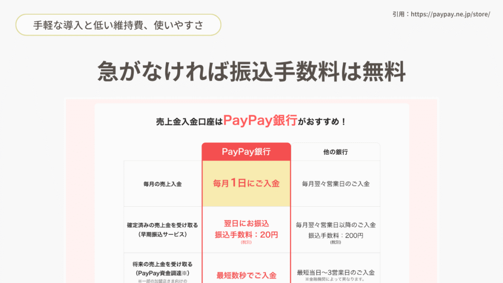 もうひとつ。振込手数料がないのも魅力。こちらはちいさなお店ほど地味に効いてくるやつですね。