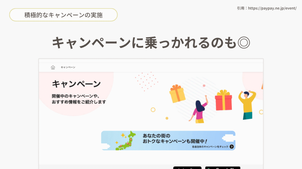PayPayは割と頻繁にキャンペーンをやっています。これ、店舗がなくても便乗できるんですよ。