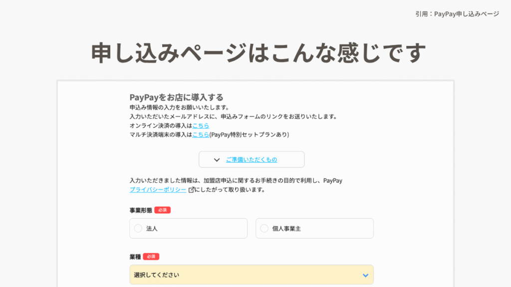 - PayPay加盟店申込ページから申し込む