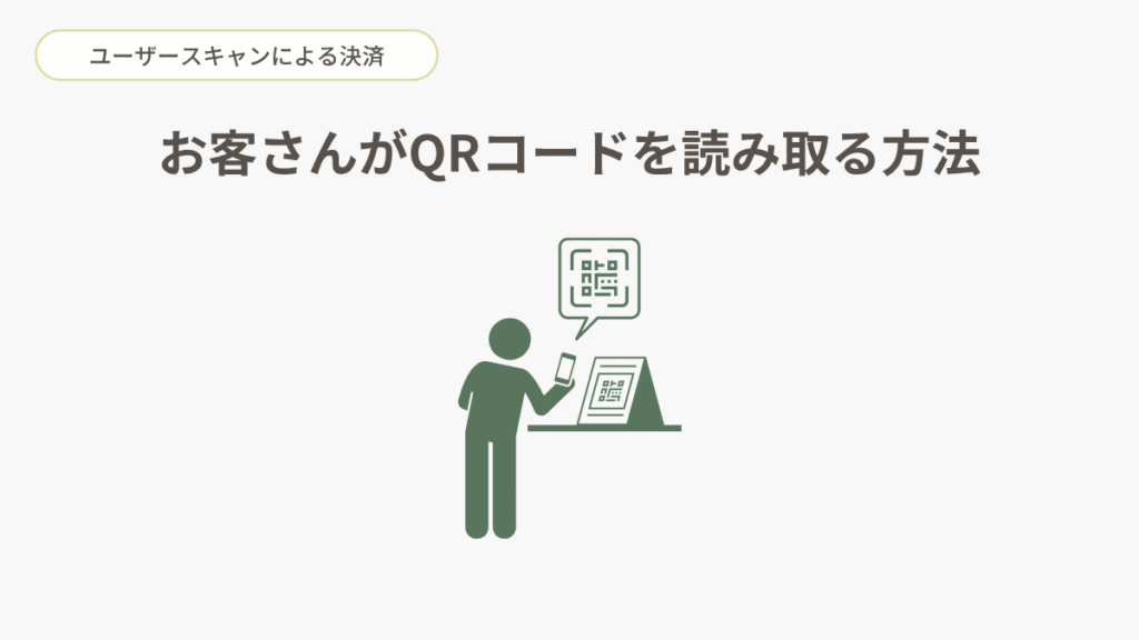 ユーザースキャン方式はお客さんのスマホに表示されたQRコードをスキャンし、決済を完了させる方法。