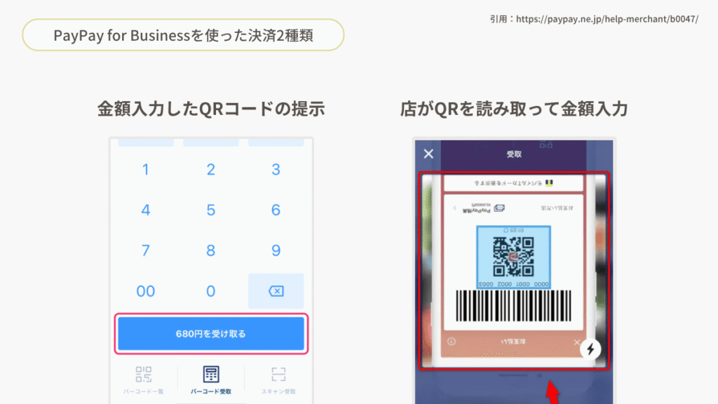 - PayPay for Businessを使った決済2種類