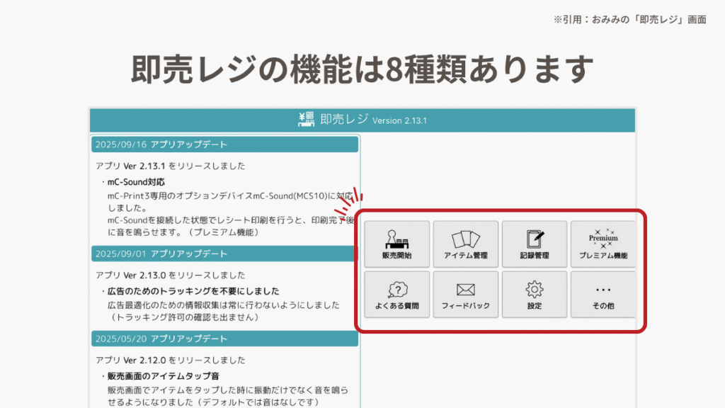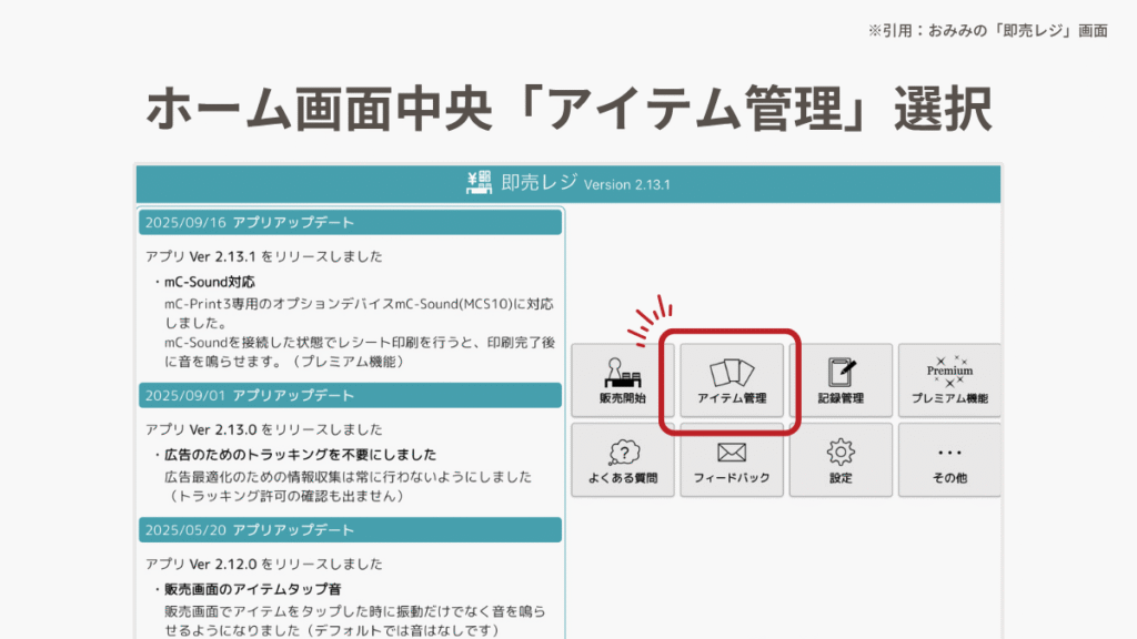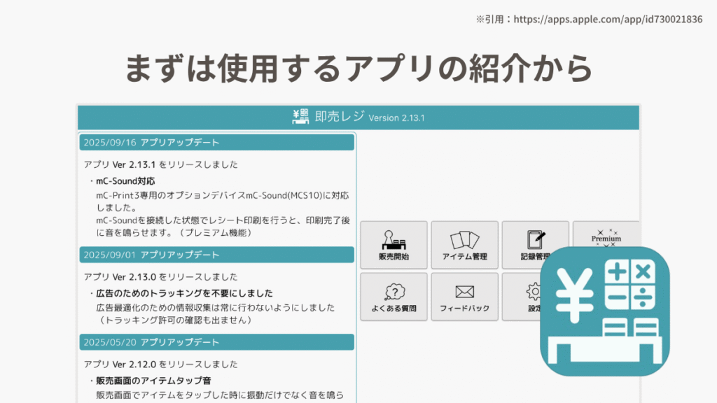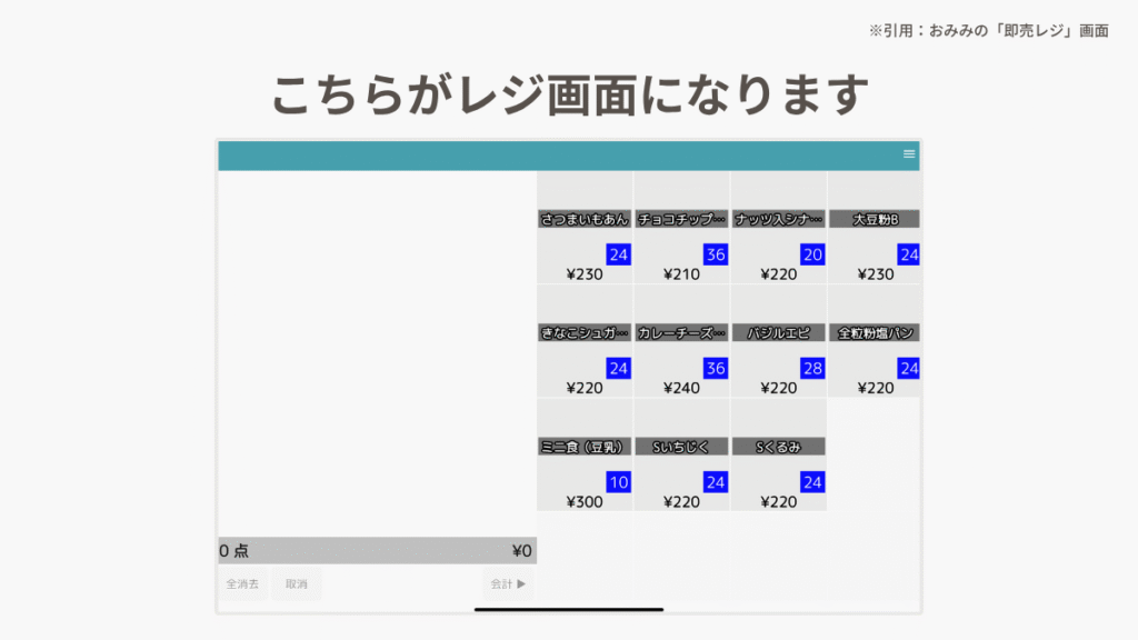 具体的なレジの流れを説明する前に、いまから使っていくアプリの基本操作を解説していきます。
