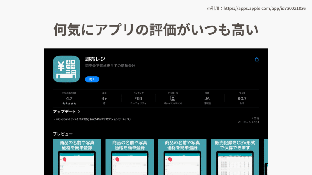 例えばSTORESレジ。こちらの画面をご覧ください。