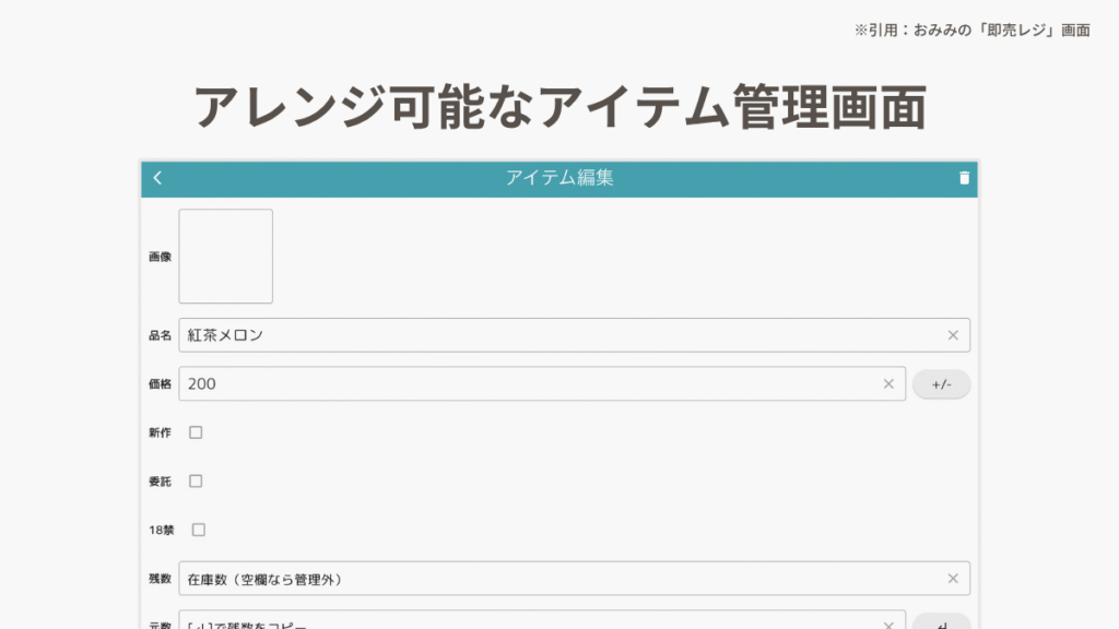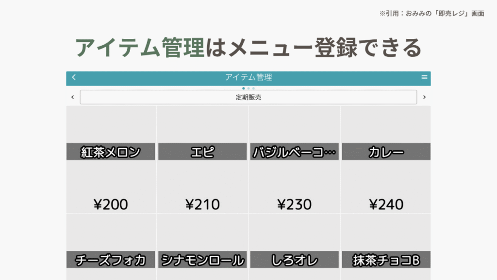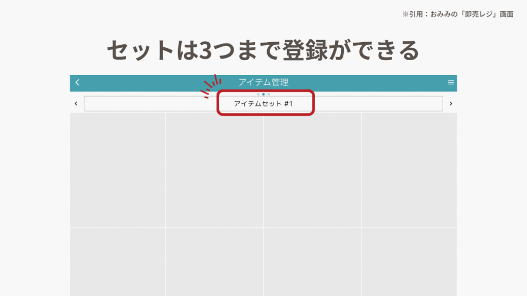 「アイテム管理」は販売するアイテムを管理する画面。3セット登録することができます。