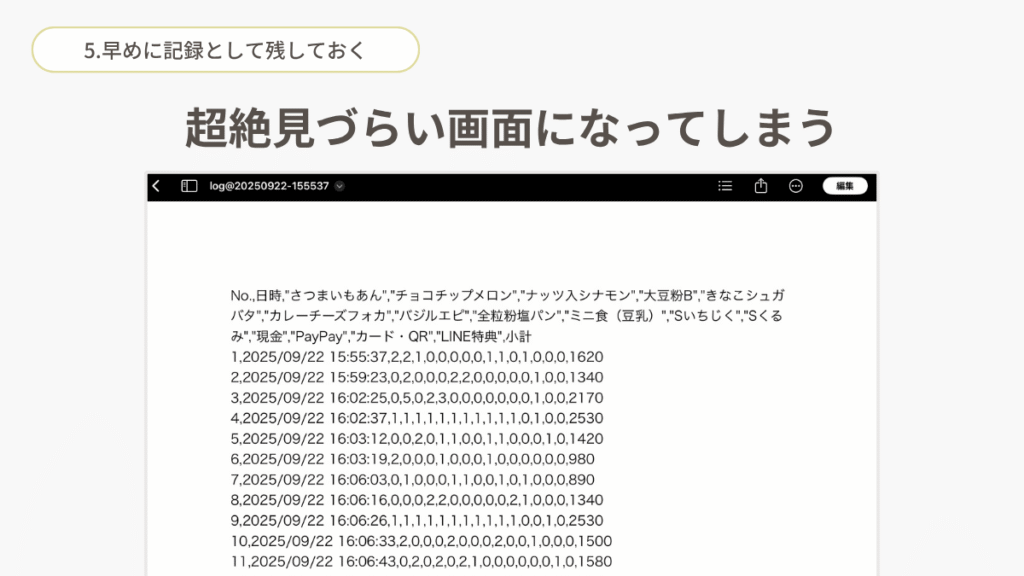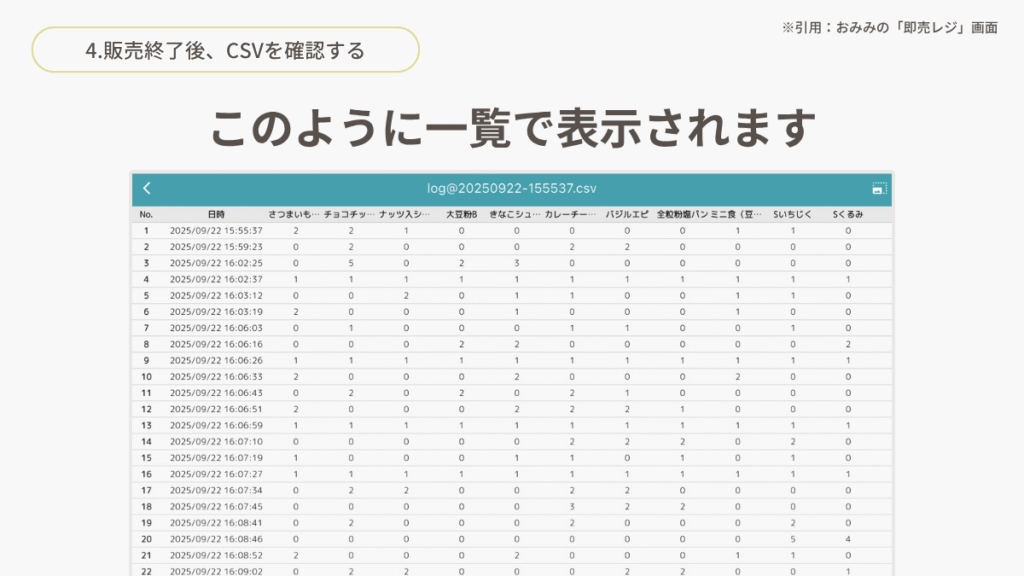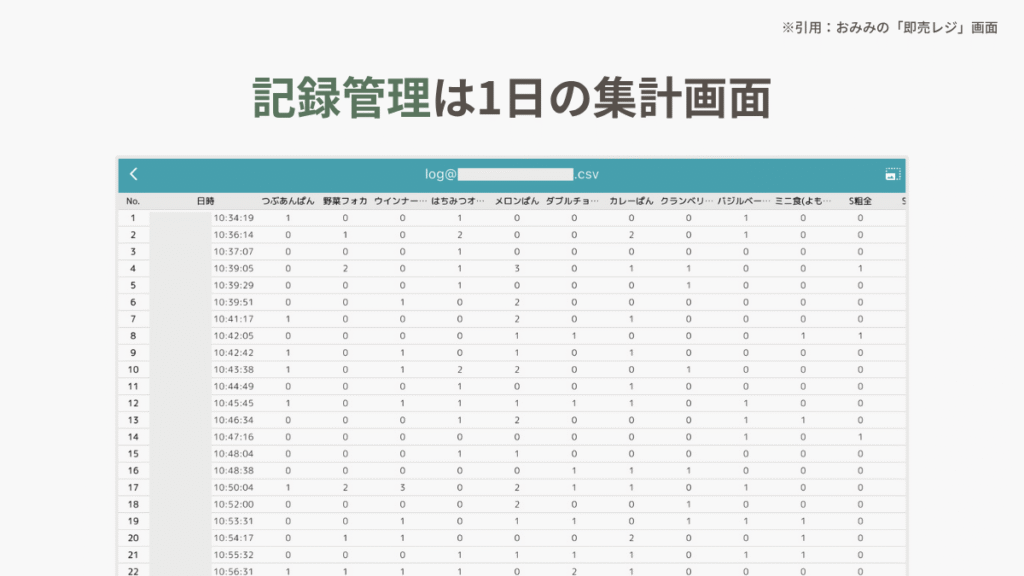 もし登録し忘れた場合でも集計さえされていれば、販売数と合計金額はわかるのでなんとかなります。