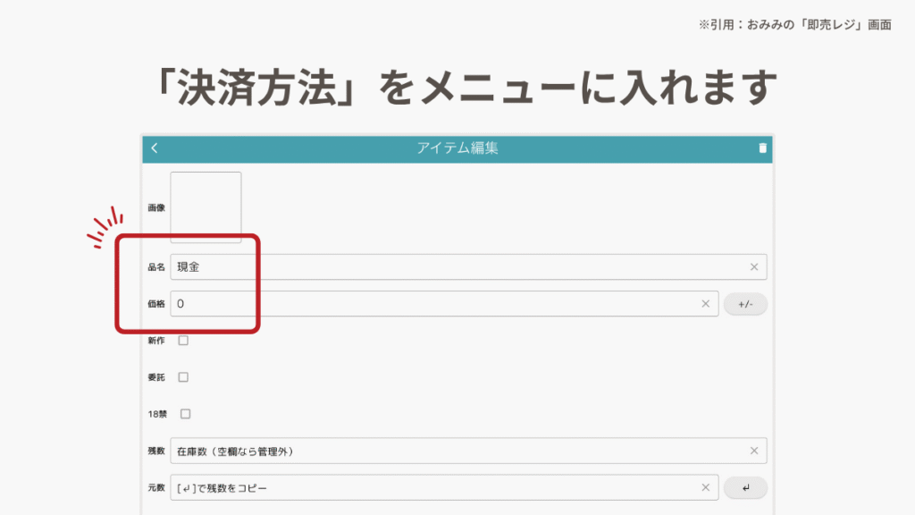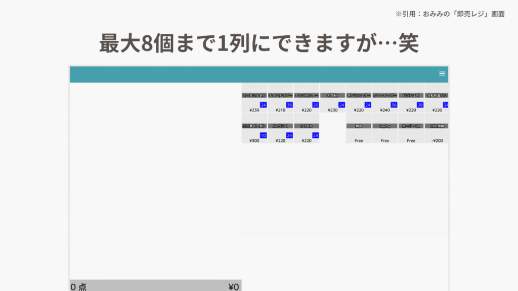 「0円」に設定しているので、点数は増えますが会計は変わりません。