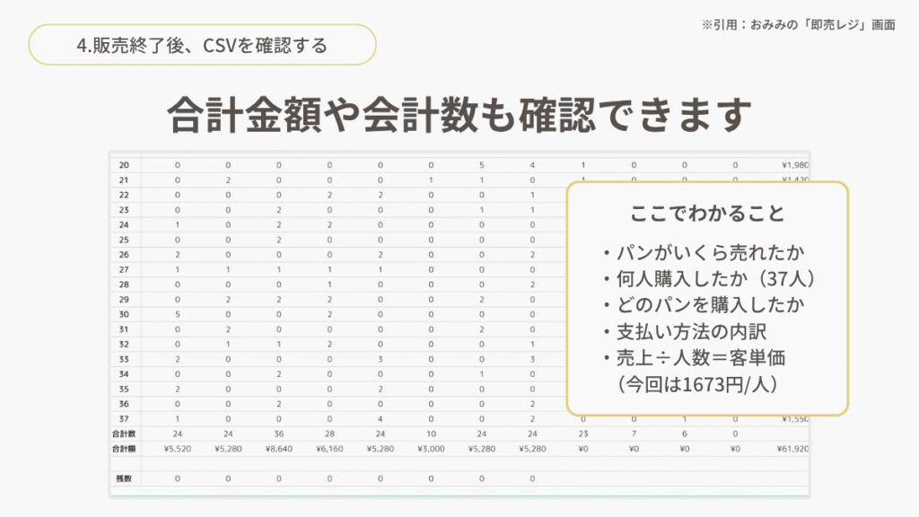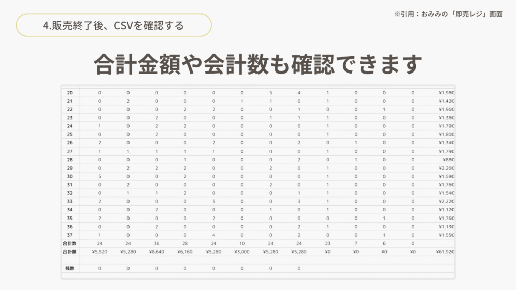 うれしい悲鳴ですが、その日の売り上げはなるべく早いうちにある程度の集計をするようにしましょう。翌日とか。