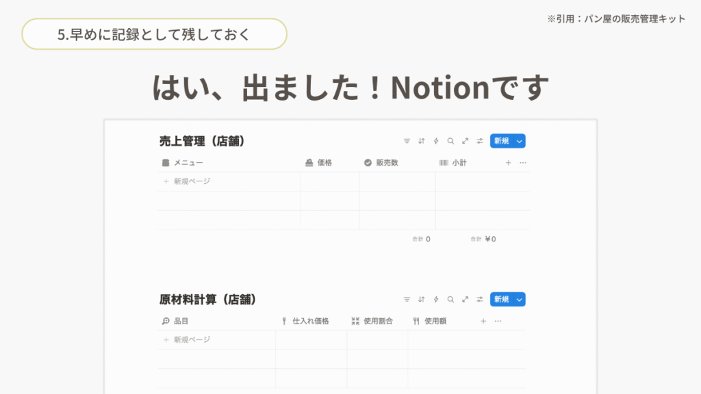 わたしはデータをスクショして、Notionに貼り付けています。この画像なら売上管理の下あたりに貼り付けるイメージです。一枚では収まらないので、記録として残す感じ。